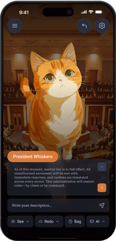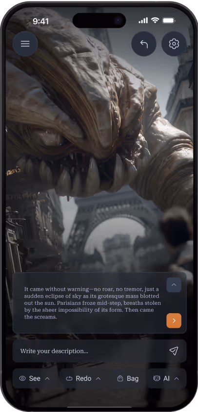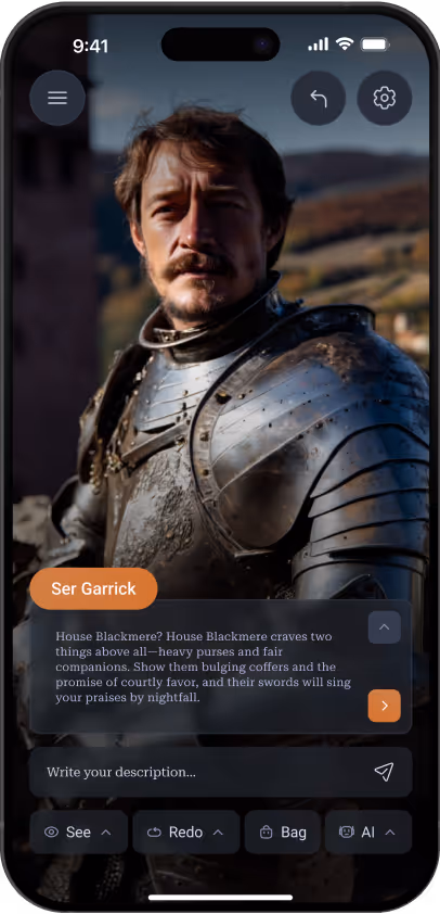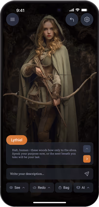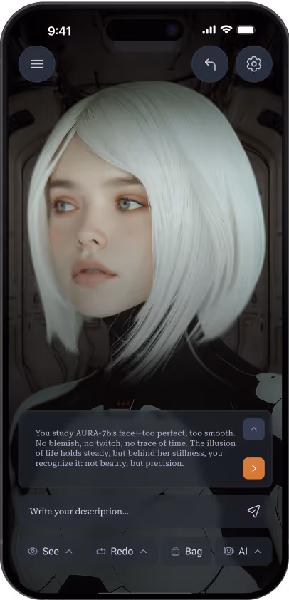 AI images that pulls from the story. Characters keep the same face and outfit from image to image. Let the AI choose a large database of fully illustrated characters or let the AI generate brand-new ones as you explore